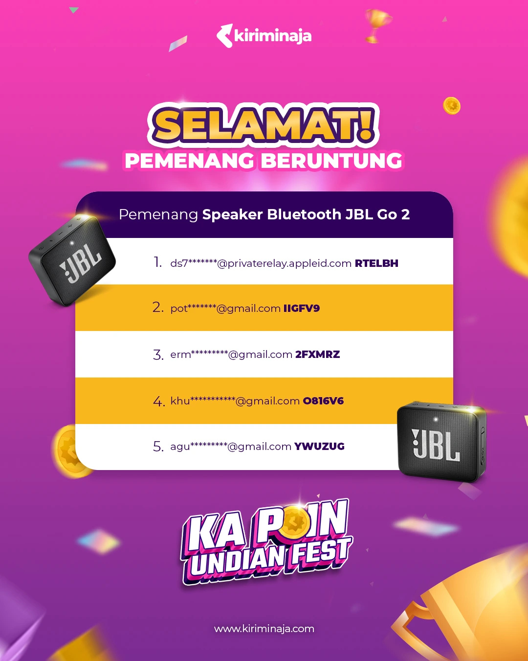 Daftar lengkap pemenang beserta data resmi hanya dapat diakses melalui kanal resmi KiriminAja.